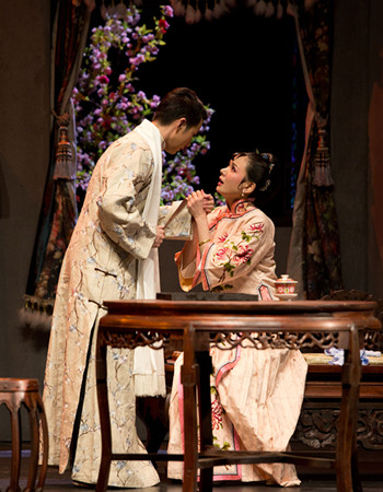 國家大劇院版《風雪夜歸人》的整體風格簡潔而又質(zhì)樸,在現(xiàn)實主義的表現(xiàn)方式中糅合了空靈唯美的元素,隨著布景一幕幕地轉(zhuǎn)換,一幅幅流動的老北京風俗畫就呈現(xiàn)在觀眾面前:官僚府邸的富麗堂皇、貧民小院的市井溫情、戲園子的綺麗繁華、天寒日暮的雪夜收尾,一頭一尾漫天大雪的連環(huán)呼應(yīng),更是做足氣氛,從而行云流水般地引出劇中“戲肉”——那段延續(xù)了二十載的愛情悲歌。